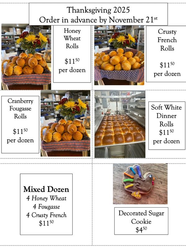 Advance orders for Thanksgiving rolls and desserts are now closed so our team can be ready for Thanskgiving!